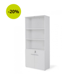 Este armario es la combinación perfecta de armario alto con puertas y sin puertas ya que te permite tener estantes a la vista mientras que dispone de 2 puertas bajas abatibles que mantendrá tu archivo seguro.