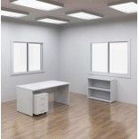 Despacho compuesto por mesa operativa, cajonera 3 cajones y armario bajo sin puertas
