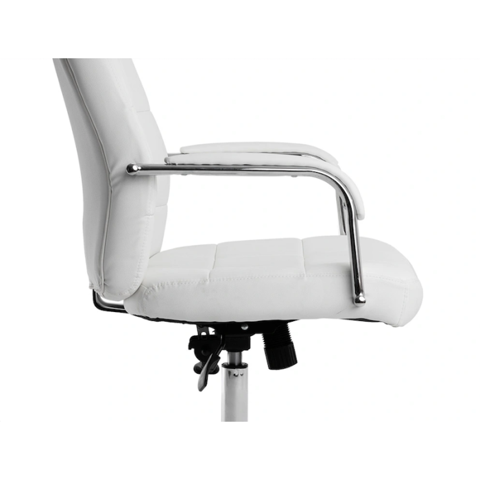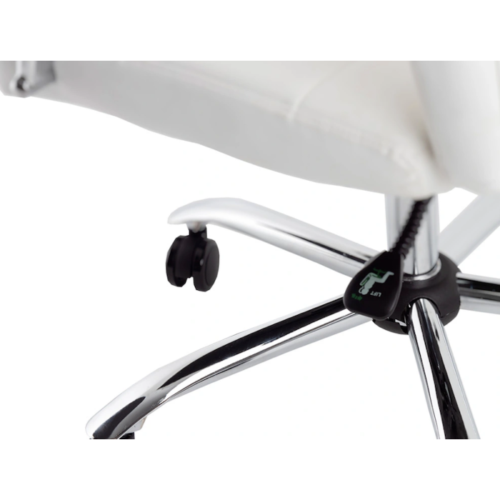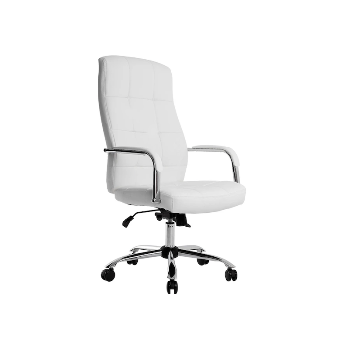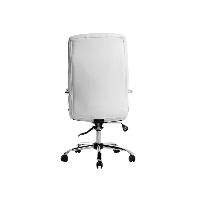 Esta elegante silla acolchada en simil piel está disponible en dos colores, blanco y negro, para adaptarse a cualquier estilo de oficina y aportar un toque de modernidad y profesionalismo a tu espacio de trabajo.