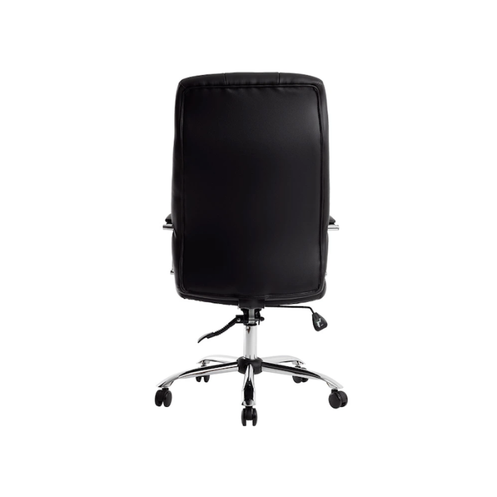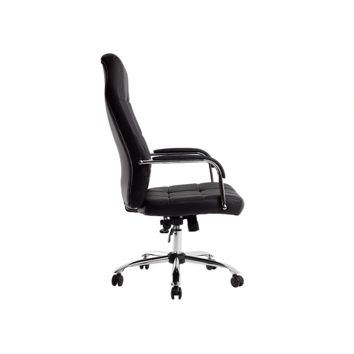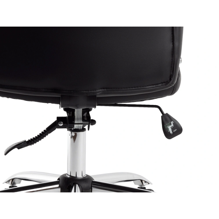 Los reposabrazos cromados no solo complementan el diseño sofisticado de la silla, sino que también están revestidos en simil piel para proporcionar una comodidad adicional al apoyar los brazos.