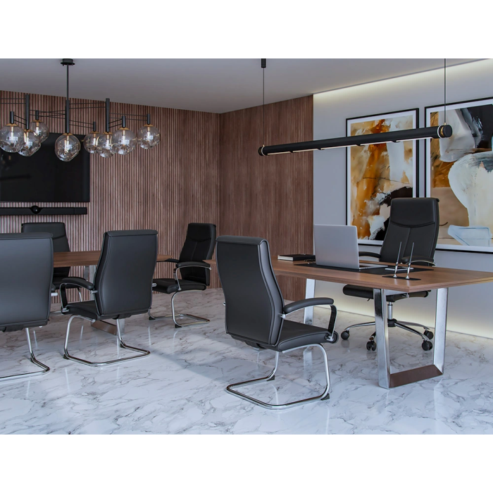 Esta silla es perfecta para salas de reuniones, áreas de espera o cualquier espacio que requiera un mobiliario profesional y elegante.