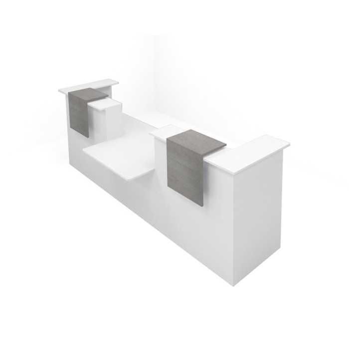 Mostrador recepción BASIC 340 cm terminaciones laterales y sobremostradores
