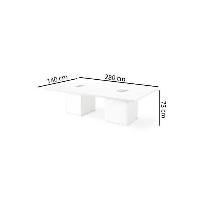Esta mesa es muy peculiar y tiene un diseño muy relevante ya que dispone de un ancho de 280 cm y fondo de 140 cm siendo su altura de 73 cm, pero lo más característico de la SERIE G3 es sus pies. La mesa dispone de un total de 2 pies en forma de cubo con la peculiaridad de que disponen de puertas para almacenamiento en su interior.