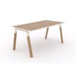 • Mesa fabricada en tablero melaminizado con cantos en ABS con cola PUR, montado sobre estructura de patas y bastidores metálicos.