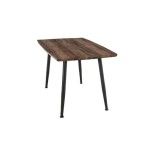- La estructura de la mesa está formada por cuatro patas metálicas, que le dan estabilidad y firmeza. Las patas son de color negro, lo que crea un contraste con el tablero de color nogal o roble veteado claro. El metal es un material que se caracteriza por su resistencia y su fácil mantenimiento, y que aporta un toque moderno y minimalista al conjunto.