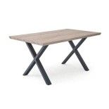 - La estructura de la mesa está formada por 2 estructuras metálicas en forma de X, que le dan un aspecto original y dinámico. Las estructuras metálicas son robustas y estables. El metal es un material que contrasta con la calidez de la madera, creando un equilibrio entre lo natural y lo industrial. El color de la estructura es negra.