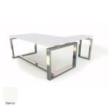 La tapa de la mesa está fabricada en bilaminado de 40 mm y los acabados disponibles para este modelo son Blanco o Wengué con lo que vamos a poder personalizar nuestra nueva mesa totalmente a nuestro gusto. Estos acabados hace que la mesa forme parte de las mesas direccionales al aportar un diseño más sofisticado.