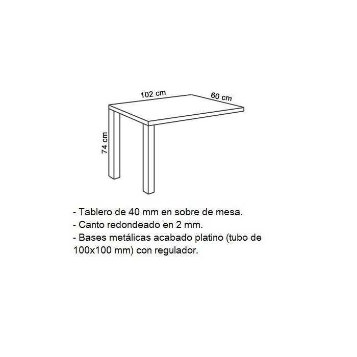 - Tablero bilaminado de 40 mm de grosor y canto redondeado en 2 mm