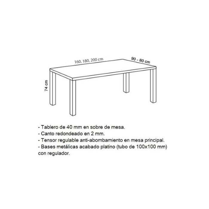 - La mesa dispone de tensor regulable anti-abombamiento. Incorpora omega triangular metálica para evitar el abombamiento