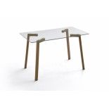 Mesa de cristal NERJA, estructura 4 patas de madera de roble, medida 120x70 cm