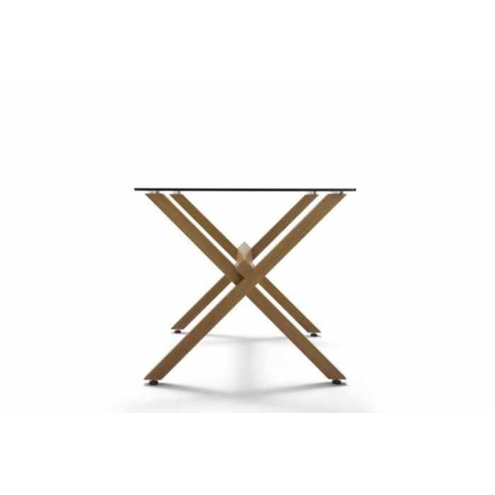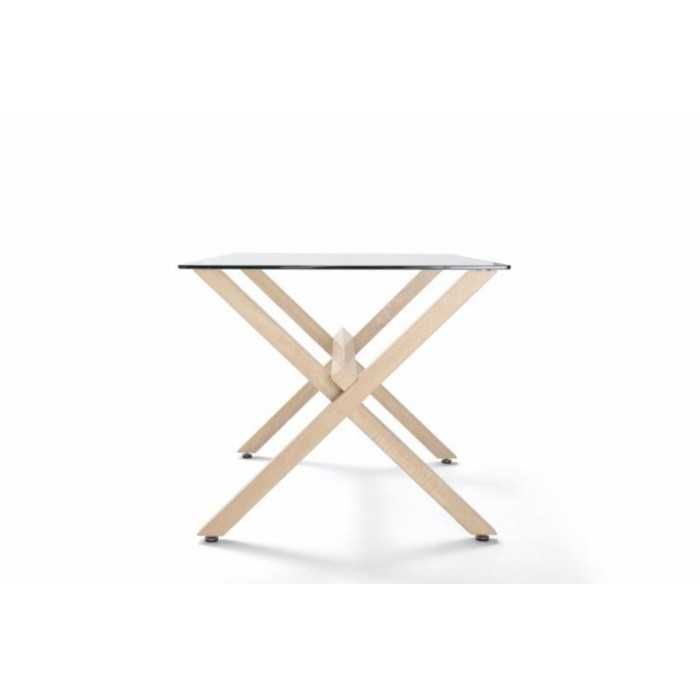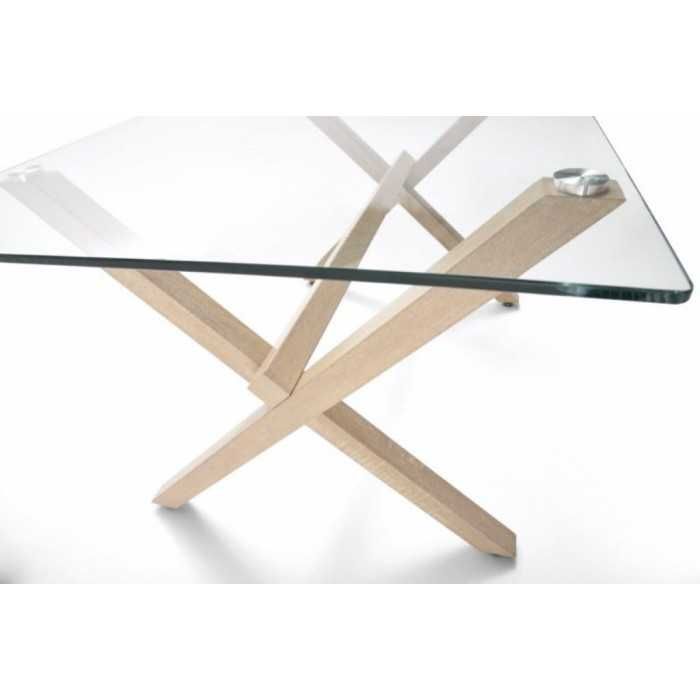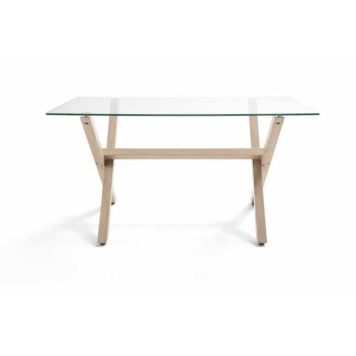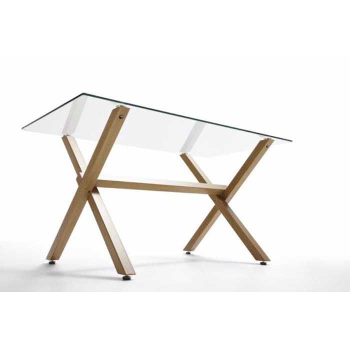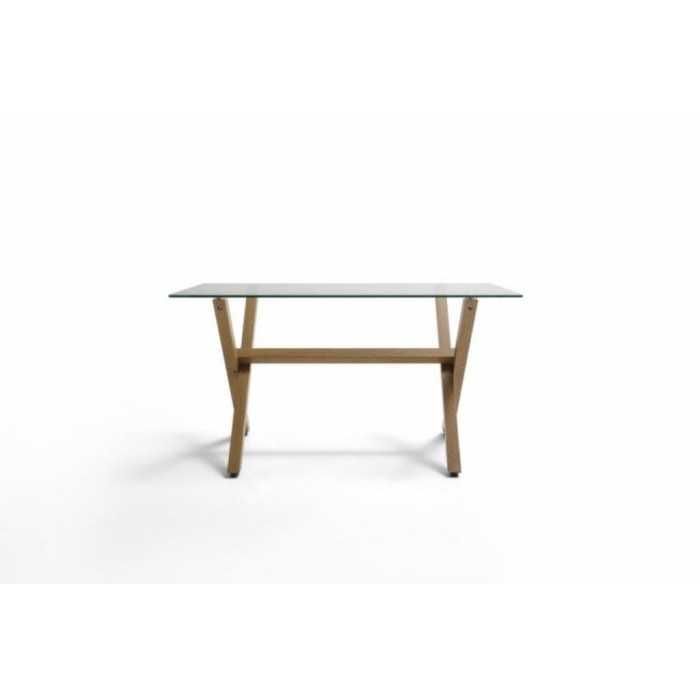Mesa de cristal ROCIO, estructura en x de madera, medida 140x80 cm