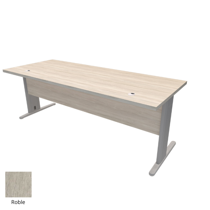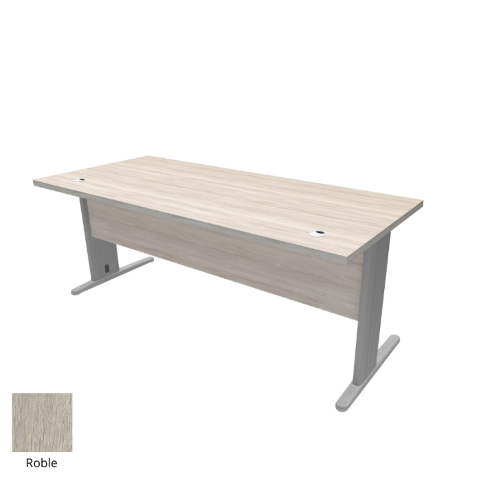 Esta mesa de oficina se caracteriza por la combinación de materiales ya que está formada por tableros de melamina y sus patas son metálicas. Todos los materiales utilizados en su fabricación son de primera calidad garantizando su estabilidad y su robustez.