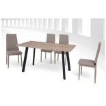 - Mesa rectangular con tapa en color roble cambria y estructura metálica combinando dos nobles elementos que sirven para comunicar el máximo rigor formal. Nuevos materiales, nuevas soluciones