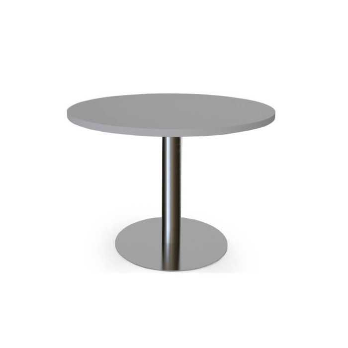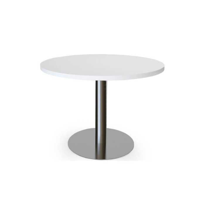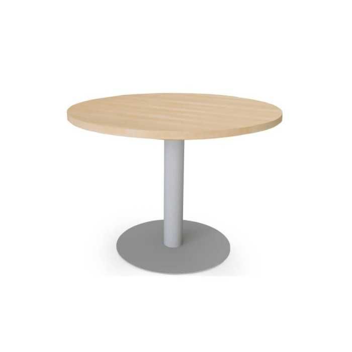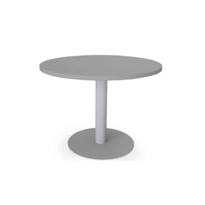 La mesa de reunión redonda con base en cilíndrica de Euromof es ideal para reuniones, trabajo en equipo, en áreas de descanso, academias, centros de formación...