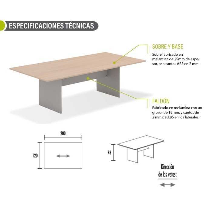 Mesa oficina de reunión TONO de Mobel Linea 200 x 120 cm rectangular
