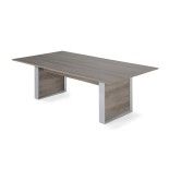 Este modelo de mesa está fabricado en melamina de 19 mm de espesor para el tablero y su faldón. Esta mesa de reunión se diferencia de las demás en sus laterales que está fabricados en melamina de 39 mm pero con un marco lateral fabricado en DM. Estos marcos laterales está disponibles en Blanco, Negro, Aluminio y Arcilla que son colores que combinan a la perfección con los acabados disponibles para la madera.