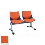Los asientos van colocados encima de la estructura que está formada por una viga. Esta viga está fabricada en acero y está pintada en epoxi negro. Sus patas, a diferencia de la viga, son en acabado cromado y tienen una forma de T invertida.