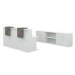 Dale la importancia que requiere a tu recepción ya que es lo primero que ven tus clientes cuando entran en tu negocio. Con este conjunto te ofrecemos un equipamiento completo de tu sala de recepción ya que está compuesto por un mostrador de la serie BASIC y 3 armarios bajos.