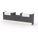 Mostrador recepción MOBI 320 cm, grafito, sobremostradores y zócalo blanco