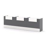 Mostrador recepción MOBI 360 cm, grafito, sobremostradores y zócalo blanco