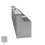 Lo más relevante de su diseño es su frontal ya que no se trata de un frontal liso sino que dispone de unos embellecedores de aluminio generando así una división en tres partes del tablero jugando con la sencillez de las formas. No sólo eso, sino que esta versión del mostrador EURO dispone de una encimera fabricada en cristal que le otorga una gran elegancia al modelo y nos permite disponer de un mueble recepción de diseño exclusivo con una relación calidad-precio indiscutible.