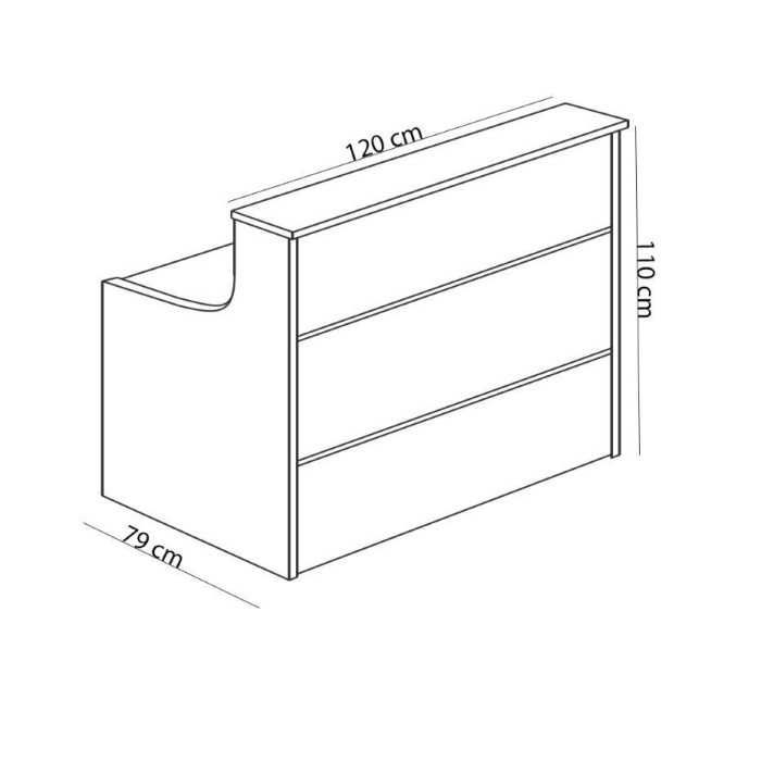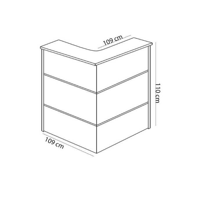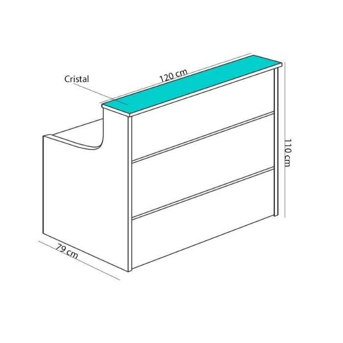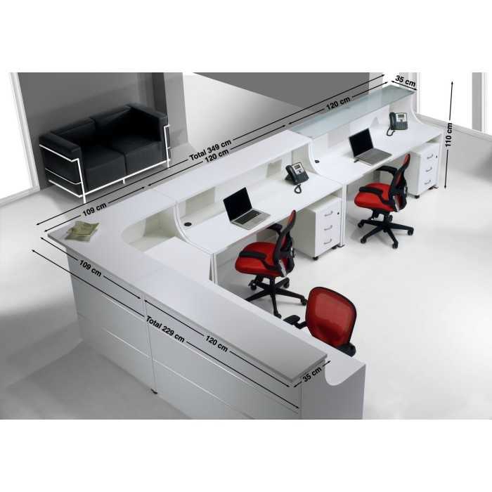 En resumen, nos encontramos ante una bonita composición de grandes dimensiones que es el mobiliario perfecto para colocar en recepciones de gran tamaño en las que necesitamos establecer varios puestos de trabajo para atender a los clientes o visitas que entran en nuestro local. Esta composición está formada por 2 módulos rectos de 120 cm con encimera de madera, 1 módulo en esquina de 109 cm y 1 módulo recto con encimera de cristal de 120 cm.