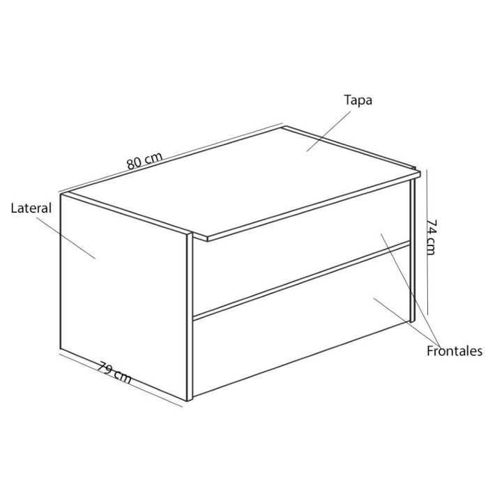 • Tablero de 30 mm en laterales, tapa de mesa y encimera. 19 mm en el frontal