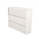 Este modelo de mostrador ha sido fabricado utilizando melamina de 30 mm de espesor y se trata de un mostrador con una altura total de 121,5 cm que no incluye una mesa en su interior por lo que es ideal para atender al público de pie o trabajar en un taburete.