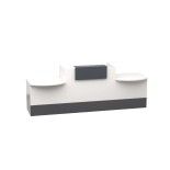 Mostrador recepción MOBI 280 cm, blanco, sobremostrador y zócalo grafito