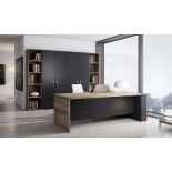 - El lateral ancho incorpora pasacable de sobremesa metálico en acabado aluminio