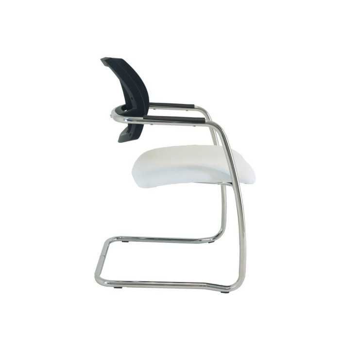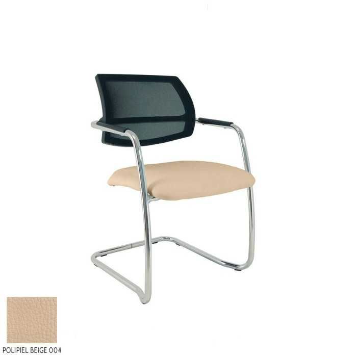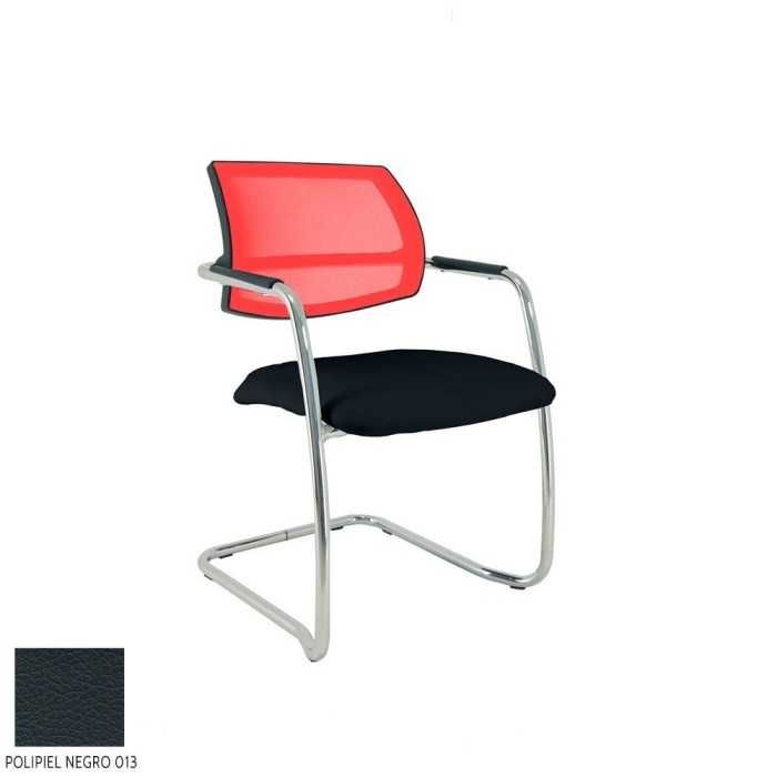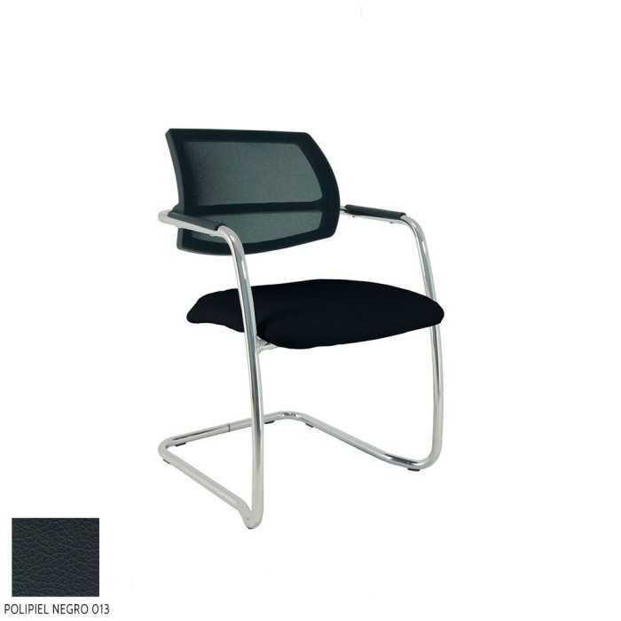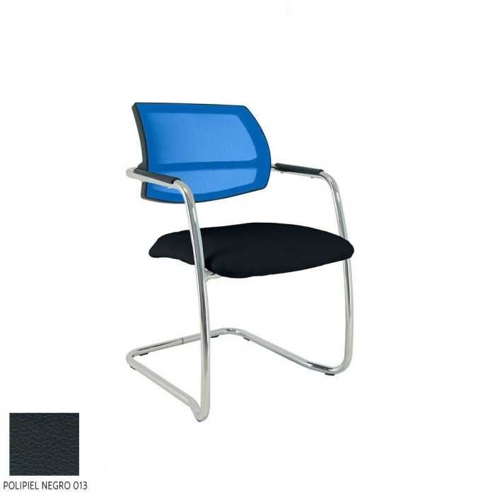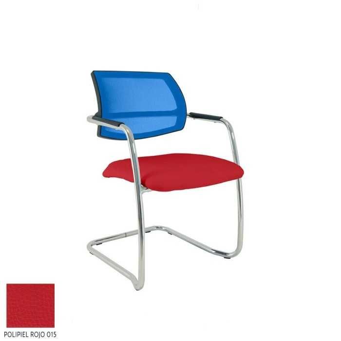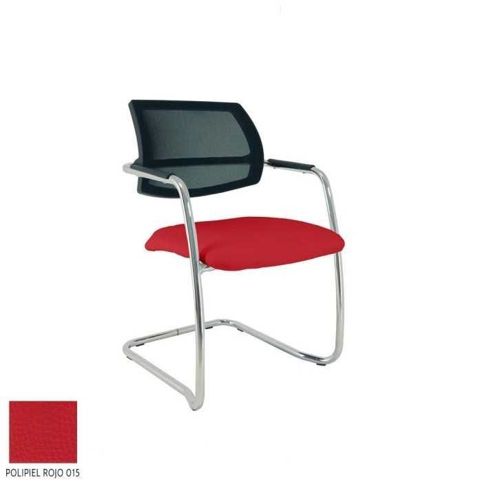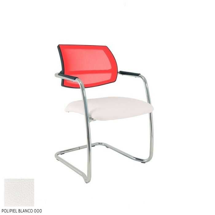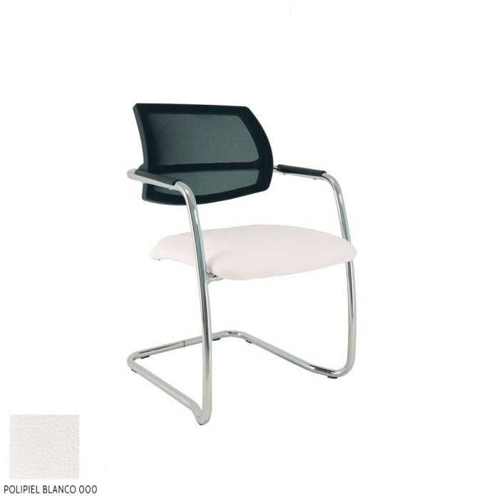 Este modelo de silla confidente dispone de una estructura de tipo patín en acabado cromado y de brazos fijos en la propia estructura en el mismo acabado pero con un apoyo flex de polipropileno en la parte superior.