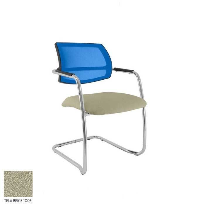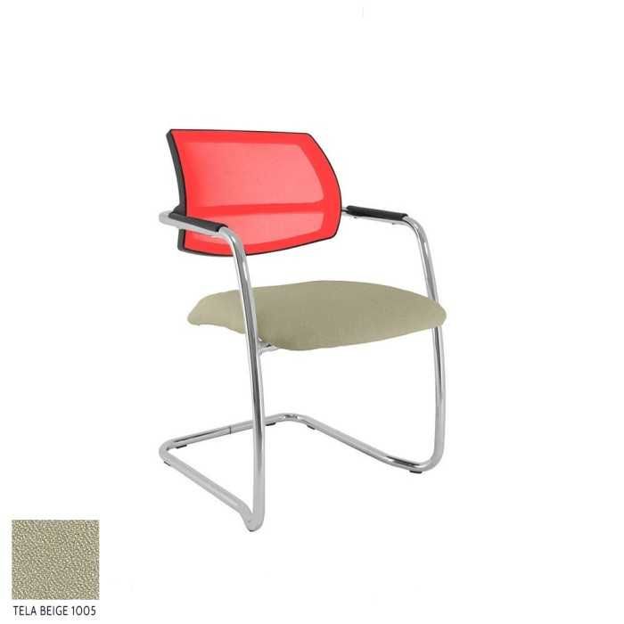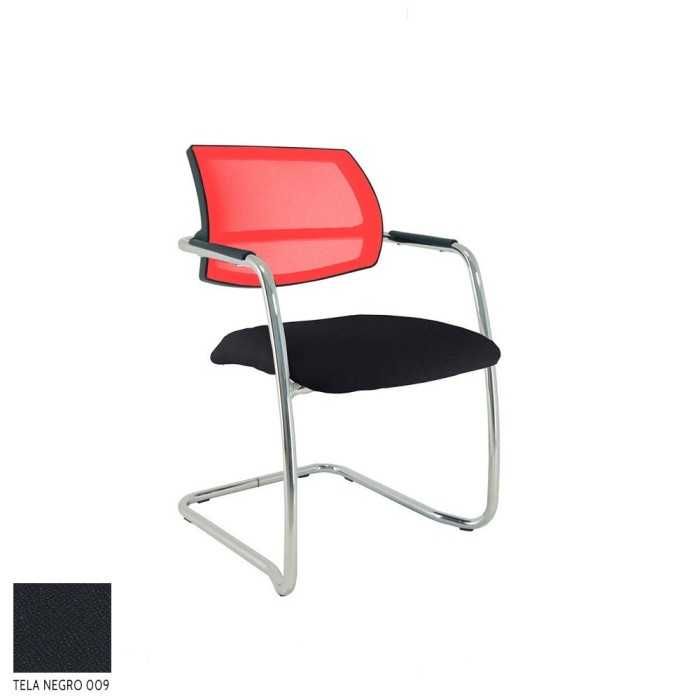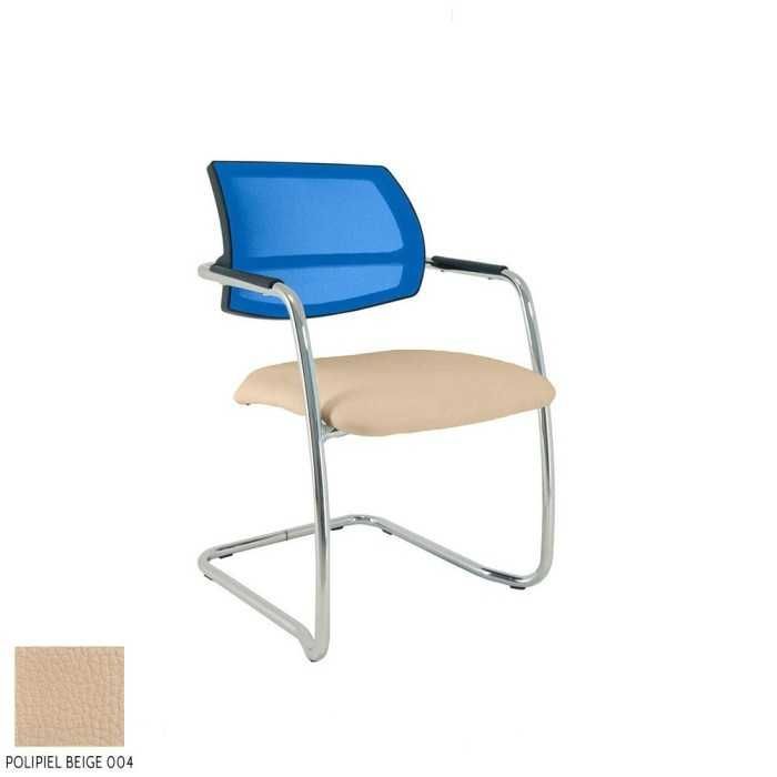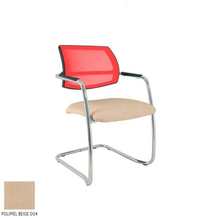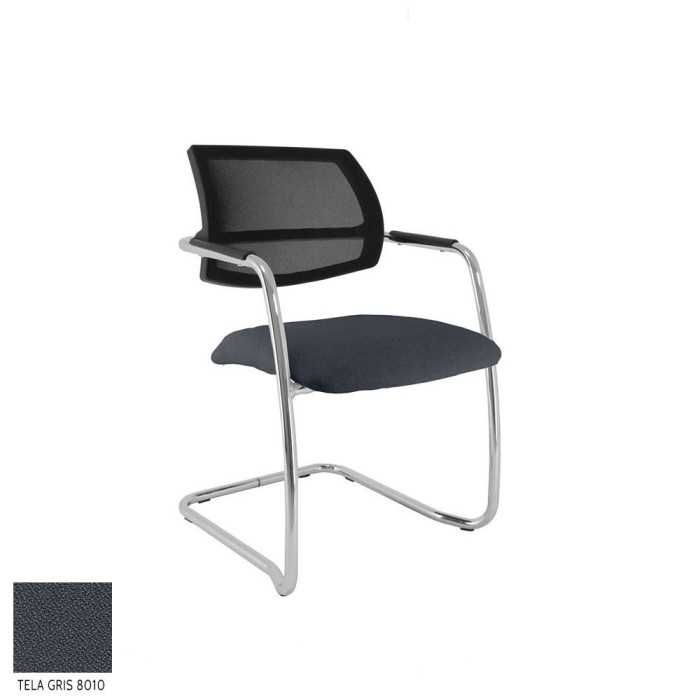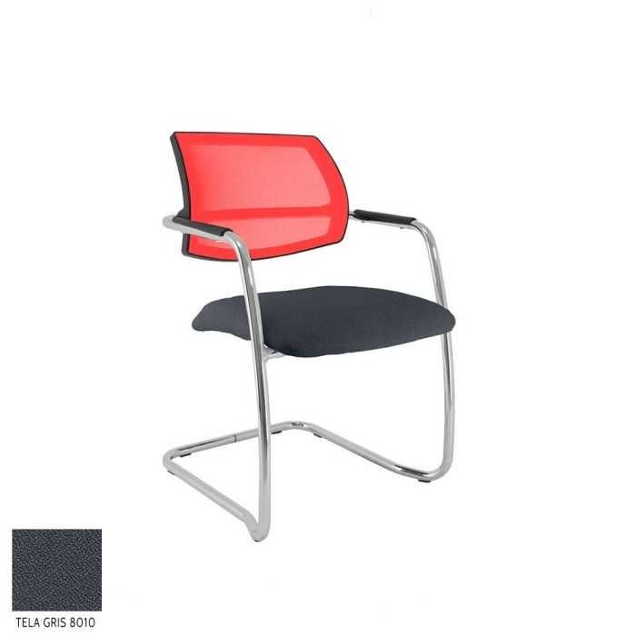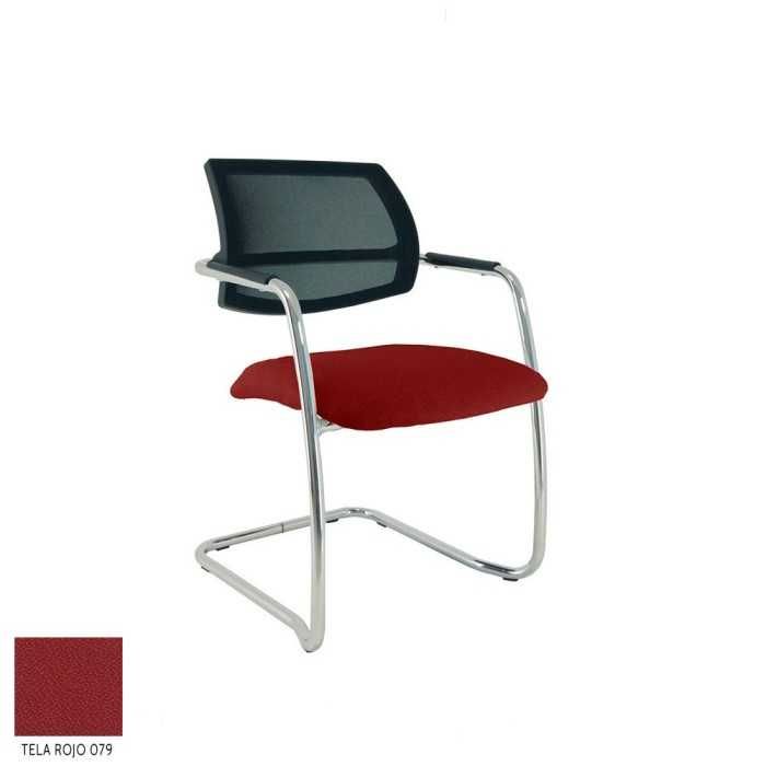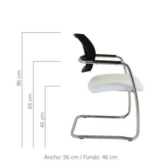 Este modelo de silla confidente dispone de una estructura de tipo patín en acabado cromado y de brazos fijos en la propia estructura en el mismo acabado pero con un apoyo flex de polipropileno en la parte superior.