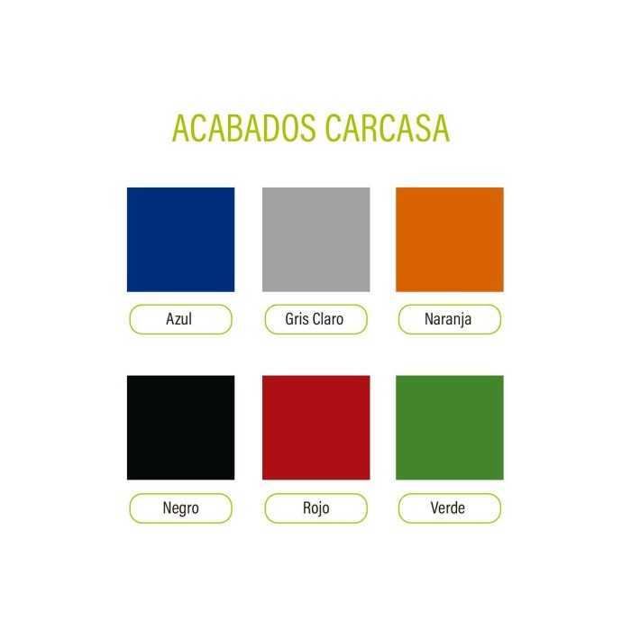 • Acabados disponibles: Azul, Gris, Naranja, Negro, Rojo y Verde
