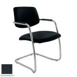 Este modelo dispone de brazos. Estos brazos son fijos y están integrados en la propia estructura de la silla, además incorpora un apoyo flex de polipropileno en la parte superior. Tanto sus brazos como su estructura son en acabado cromado y sus patas son tipo patín.