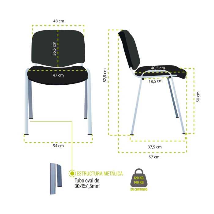Su asiento es de gran grosor por lo que el confort está asegurado durante las horas de uso por ello este modelo de silla 4 patas es ideal para colectividades, centros de formación, autoescuelas, salas de reunión o para oficinas. El ancho del asiento es de 46 cm y su fondo de 40,5 cm por lo que la persona que esté sentada en ella dispone de espacio suficiente para estar cómodo durante las horas de uso y adoptar la postura idónea en todo momento.