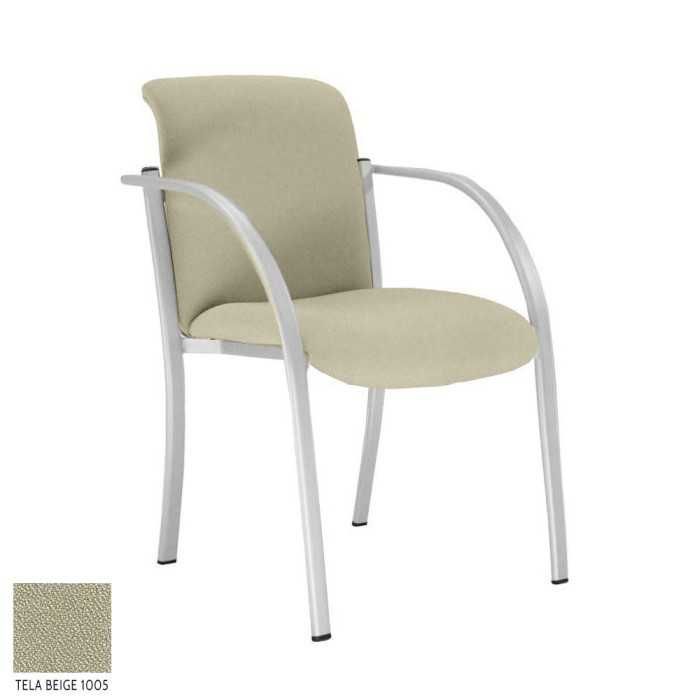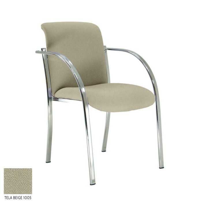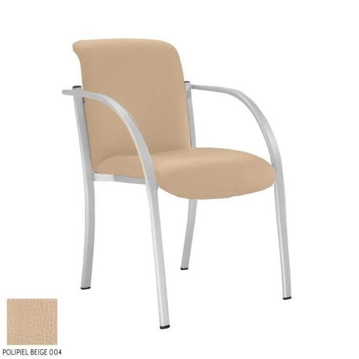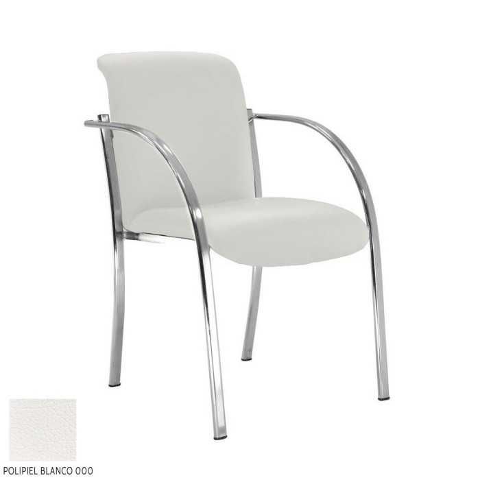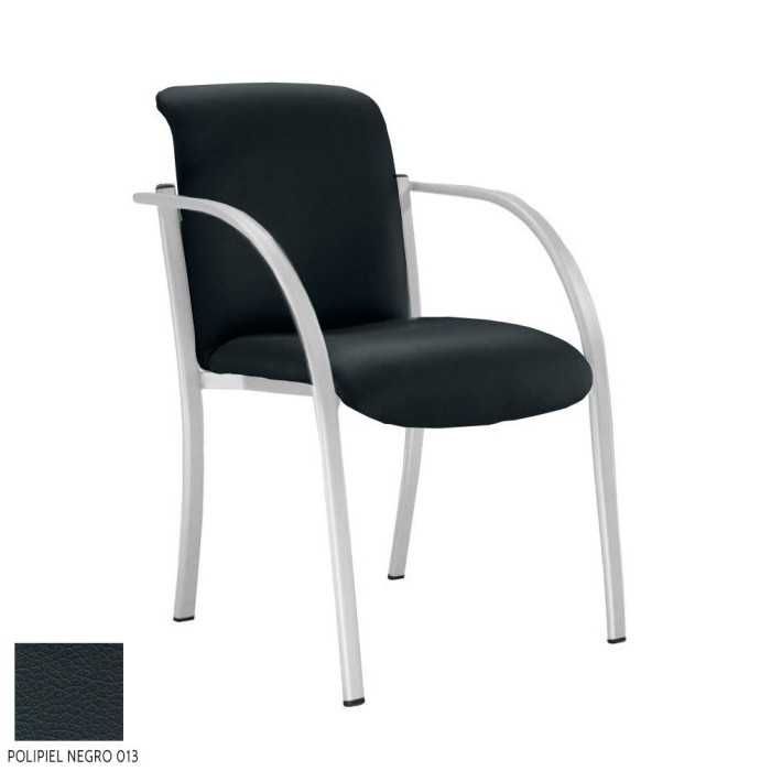 Dispone de brazos que están integrados en la propia estructura por lo que son de acero oval en negro, gris o cromados a juego con la estructura de 4 patas.