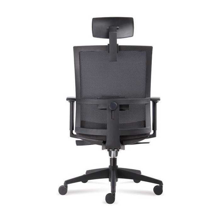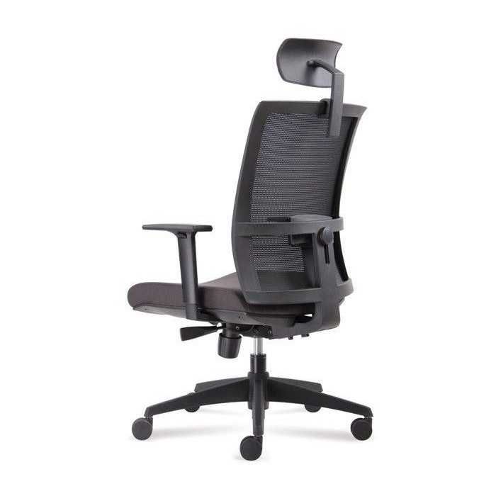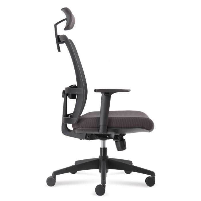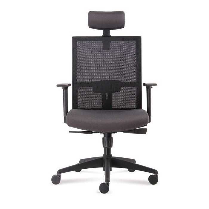 La silla Verona es una silla operativa que combina el respaldo en malla y el asiento tapizado. Esta versión incluye un cabecero en la perte superior del respaldo.