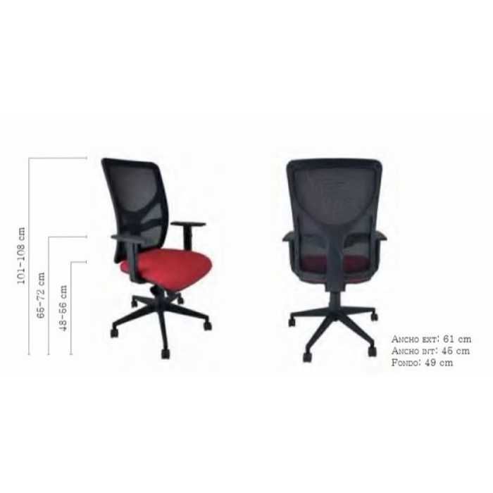 Combina diferentes materiales en su diseño así como su atractivo y ergonómico respaldo en malla que permite trabajar de forma más cómoda y menos calurosa durante las épocas de más calor, además este respaldo en malla permite una mayor circulación del aire y una mejor adaptación al cuerpo consiguiendo de forma fácil adoptar una postura saludable durante las horas de trabajo en la oficina.
