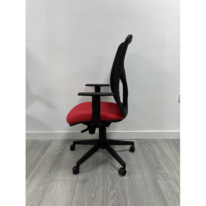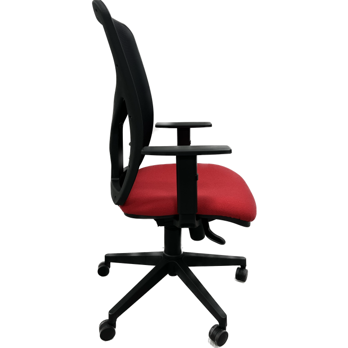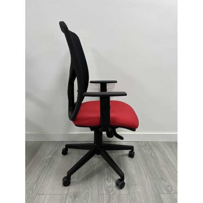 Su asiento dispone de un gran acolchado en su interior formado por relleno de goma flexible de alta densidad que se amolda perfectamente a la postura adoptada y que es apto para un uso profesional diario. Esta silla de oficina está disponible en una amplia variedad de tapizados a elegir para su asiento acolchado y tapizado y su respaldo en malla está disponible en blanco, negro, rojo y azul.
