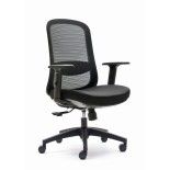 Este nuevo modelo de silla ergonómica combina el tapizado en malla y en tela. Dispone de respaldo tapizado en malla de alta resistencia en acabado negro con asiento acolchado de tela flex negra. Todo para otorgarle elegancia y hacer que se adapte a cualquier tipo de estilo y decoración.