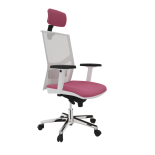 • Respaldo en malla técnica de alta resistencia y transpirable en color blanco + soporte lumbar acabado en negro