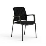 El acabado del respaldo es de rejilla en color negro lo que permite la transpiracion y el asiento está tapizado en negro con espuma de poliuretano de gran densidad para ofrecer el mejor confort durante su uso. Con estas carácterísticas nos encontramos ante un diseño de silla confidente que combina estética y versatilidad.