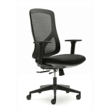 Este nuevo modelo de silla ergonómica combina el tapizado en malla y en tela. Dispone de respaldo y cabecero tapizados en malla de alta resistencia en acabado negro con asiento acolchado de tela flex negra. Todo para otorgarle elegancia y hacer que se adapte a cualquier tipo de estilo y decoración.
