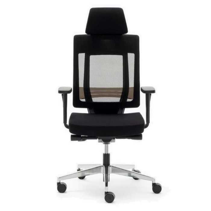 Silla ergonómica de oficina MONTREAL de Euromof, respaldo en malla con cabecero, brazos regulables 3D