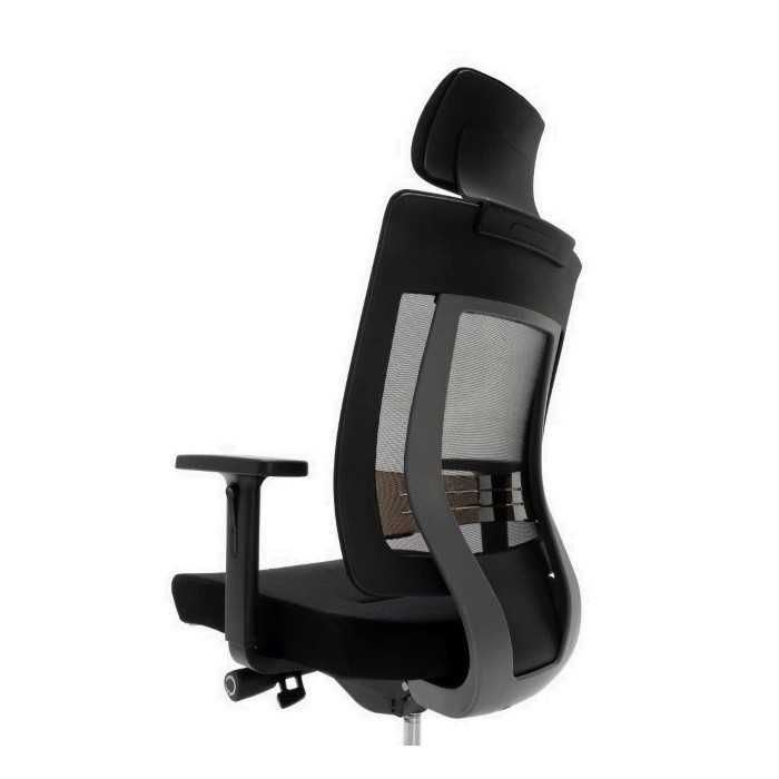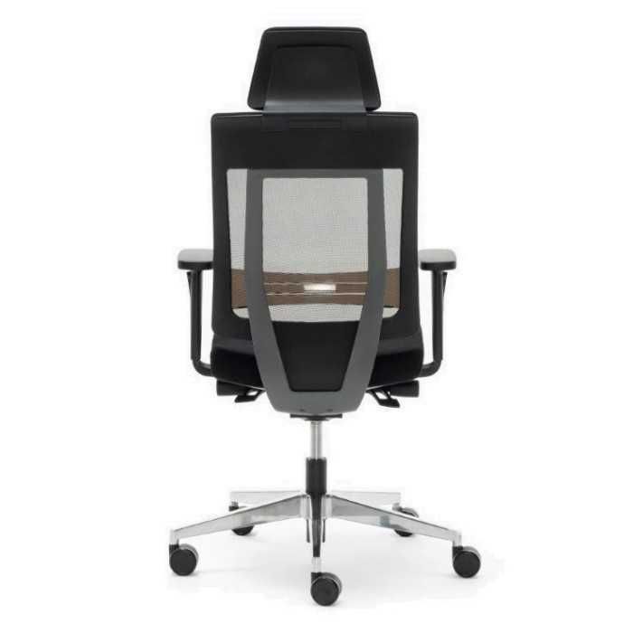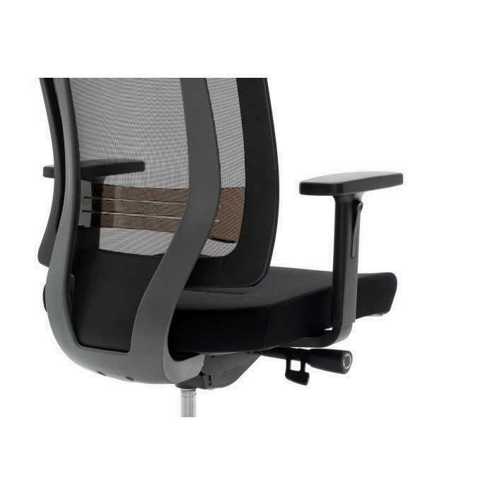 Dispone de un respaldo en malla. Se trata de una malla de alta resistencia en acabado negro que permite un mayor ajuste al cuerpo de la persona que trabaje en ella y además facilita la transpiración por lo que es menos calurosa que otro tipo de silla con respaldo tapizado. Sus estudiadas formas permiten recoger la espalda a la perfección y conseguir una óptima postura evitando molestias y lesiones a largo plazo.