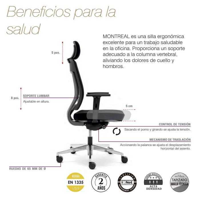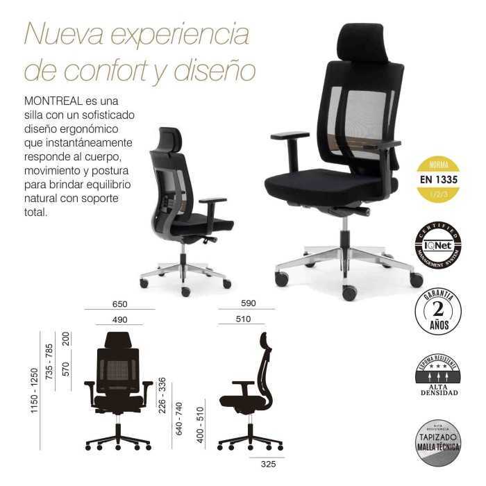 La silla MONTREAL combina diseño y ergonomía lo que permite que sea la silla perfecta para colocar en oficinas, despachos, recepciones, call center...