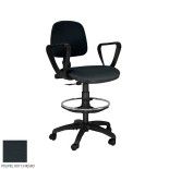 Taburete de oficina modelo SALDAÑA de Vincolo, giratorio con ruedas, brazos fijos, aro cromado